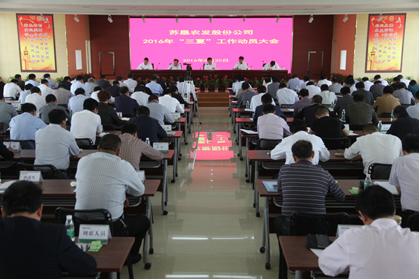 5月20日,蘇墾農發(fā)股份公司在黃海分公司召開(kāi)2016年“三夏”工作動(dòng)員大會(huì )。江蘇省農墾集團有限公司總經(jīng)理、蘇墾農發(fā)股份公司董事長(cháng)胡兆輝出席會(huì )議并作重要講話(huà)。蘇墾農發(fā)股份公司總裁姜建友主持會(huì )議并講話(huà)。蘇墾農發(fā)股份公司副總裁許峰作“三夏”工作動(dòng)員講話(huà)。