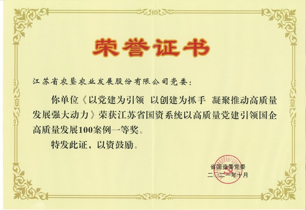 • 近日,由蘇墾農發(fā)黨委報送的《以黨建為引領(lǐng) 以創(chuàng )建為抓手 凝聚推動(dòng)高質(zhì)量發(fā)展強大動(dòng)力》榮獲“江蘇省國資系統以高質(zhì)量黨建引領(lǐng)國企高質(zhì)量發(fā)展100案例”一等獎;《“爭創(chuàng )紅旗黨支部”激發(fā)基層組織新活力》在集團黨建工作“創(chuàng )典型、創(chuàng )品牌、創(chuàng )特色”案例評選中榮獲一等獎。這些榮譽(yù)的獲得充分肯定了近年來(lái)農發(fā)公司黨委理論學(xué)習中心組學(xué)習所取得的積極成效。