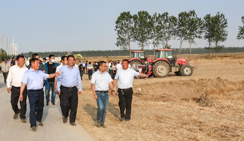 •        6月13日,江蘇省農業(yè)技術(shù)推廣總站站長(cháng)管永祥和省市相關(guān)農業(yè)農村部門(mén)負責人、科研院所專(zhuān)家一行80余人蒞臨蘇墾農發(fā)黃海分公司觀(guān)摩指導。江蘇省農墾集團有限公司農業(yè)發(fā)展部部長(cháng)劉衛華、蘇墾農發(fā)種植業(yè)管理中心總經(jīng)理徐啟來(lái)、黃海農場(chǎng)公司主要領(lǐng)導等陪同。