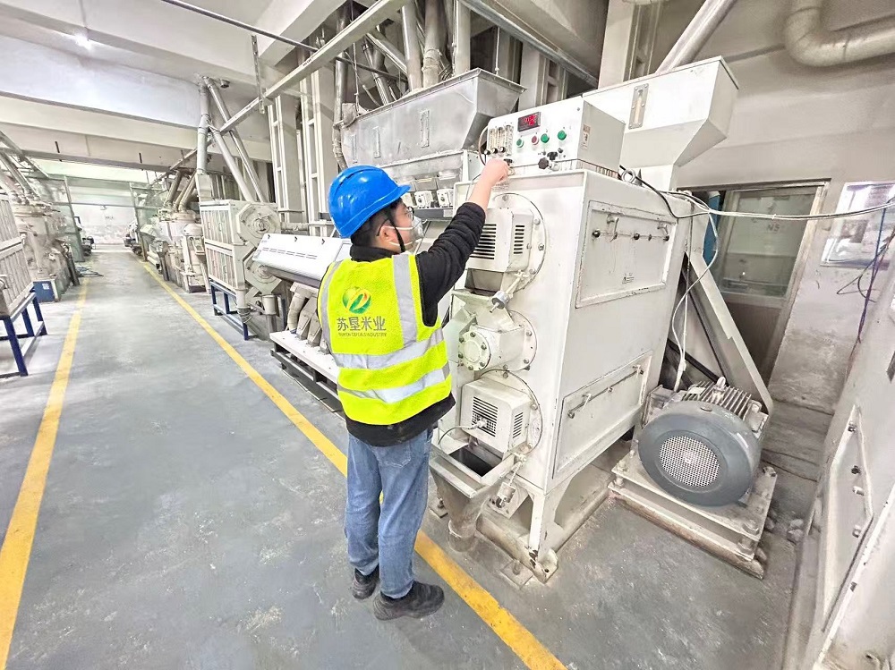 踏入公司生產(chǎn)車(chē)間,機器的轟鳴聲此起彼伏,青年擋車(chē)工王承順正全神貫注地注視著(zhù)大米加工流水線(xiàn)的顯示屏,手指在操作面板上敏捷地切換。在“三秋”期間,生產(chǎn)線(xiàn)采取24小時(shí)輪班制度,王承順主動(dòng)請纓,承擔了從深夜12點(diǎn)到早晨6點(diǎn)的“攻堅班”任務(wù)。一次夜班期間,他敏銳地發(fā)現色選機的篩選精度有所下降,立刻果斷停機進(jìn)行檢查,最終在設備內部清理出了細小的稻殼雜質(zhì)?!叭绻鹊教炝猎偬幚?,至少會(huì )影響到5噸大米的品質(zhì)?!蓖醭许樳叢潦弥?zhù)額頭上的汗水邊說(shuō)道。